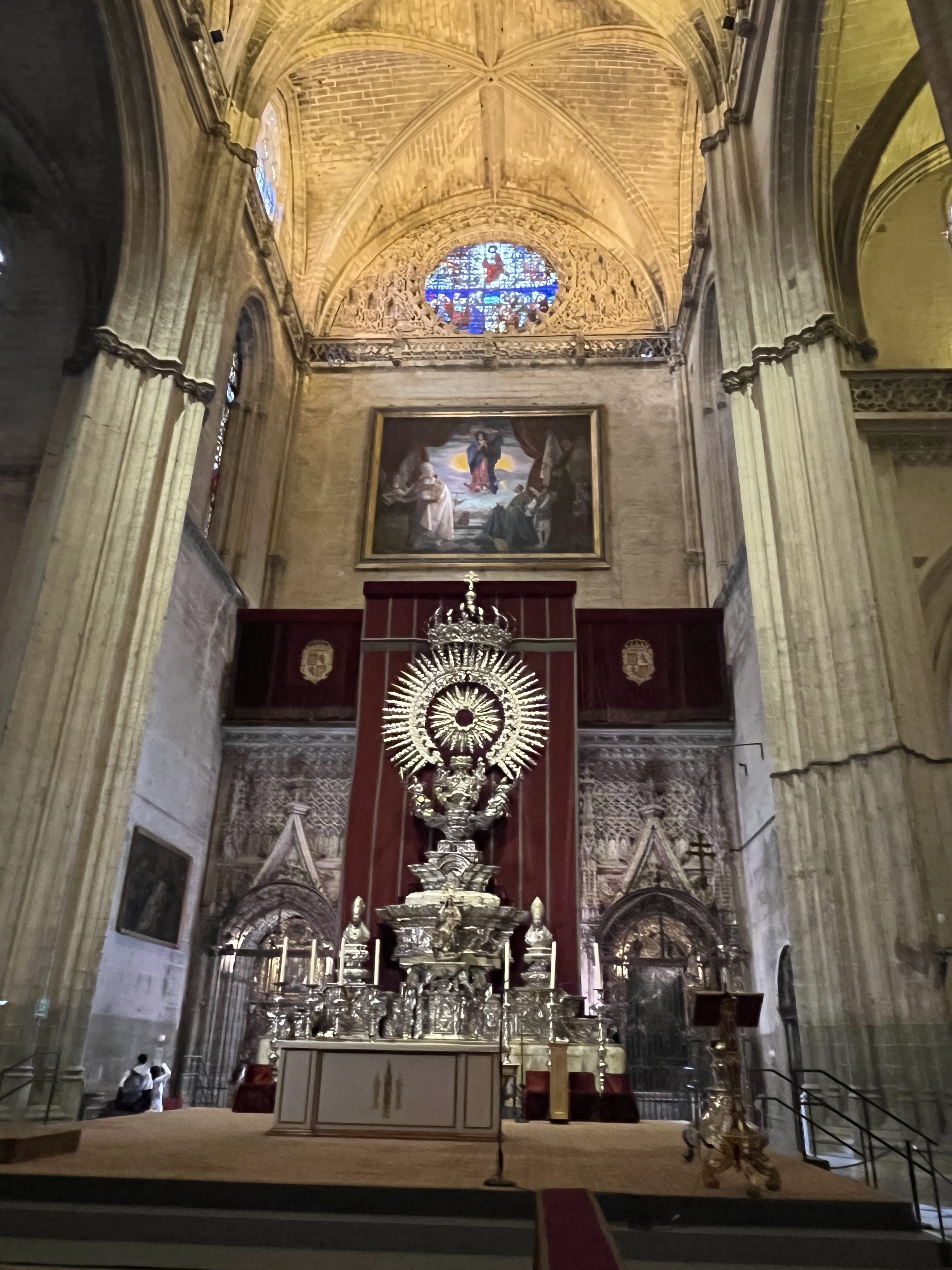 The Cathedral of St Mary of the See, as it’s officially known, was consecrated in 1507, 15 years after the fall of Granada and the full reconquest of Spain by Isabella and Ferdinand. It’s immense and, as I wrote earlier, full of world-class paintings and sculptures of most of the Spanish Masters, including Goya. It’s second only to El Prado in Madrid in the size and prominence of its collection. The silver and gold alone must be worth over a $100 million.