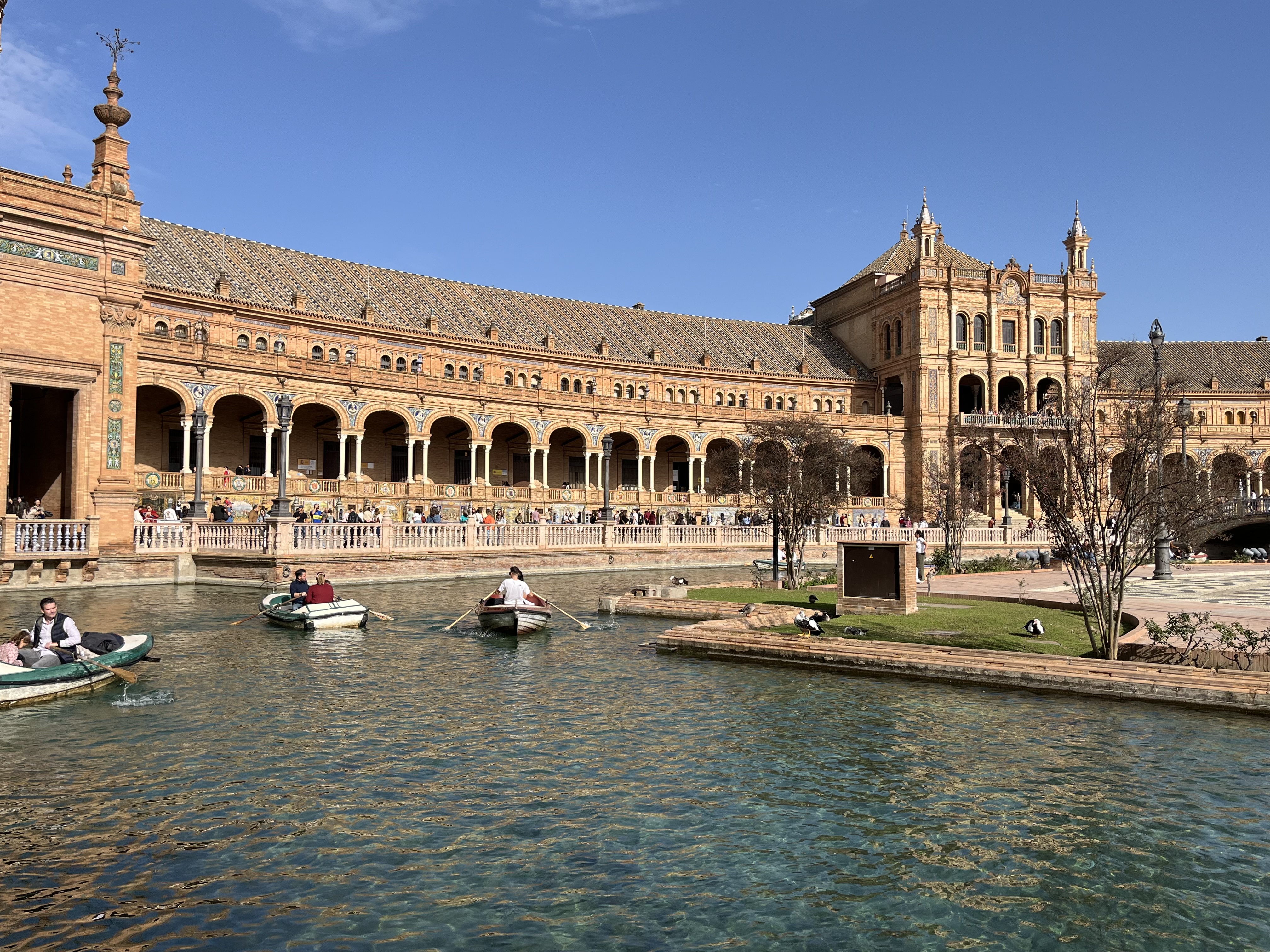 We passed the Torre de Oro and the University of Sevilla en route to our final stop, Plaza de España, built in the 1920’s and completed in 1929 for the Pan-American Exposition. It’s the largest plaza in Spain and was designed in an eclectic style by the famous architect Anibal Gonzalez and is the main meeting plaza in the city.