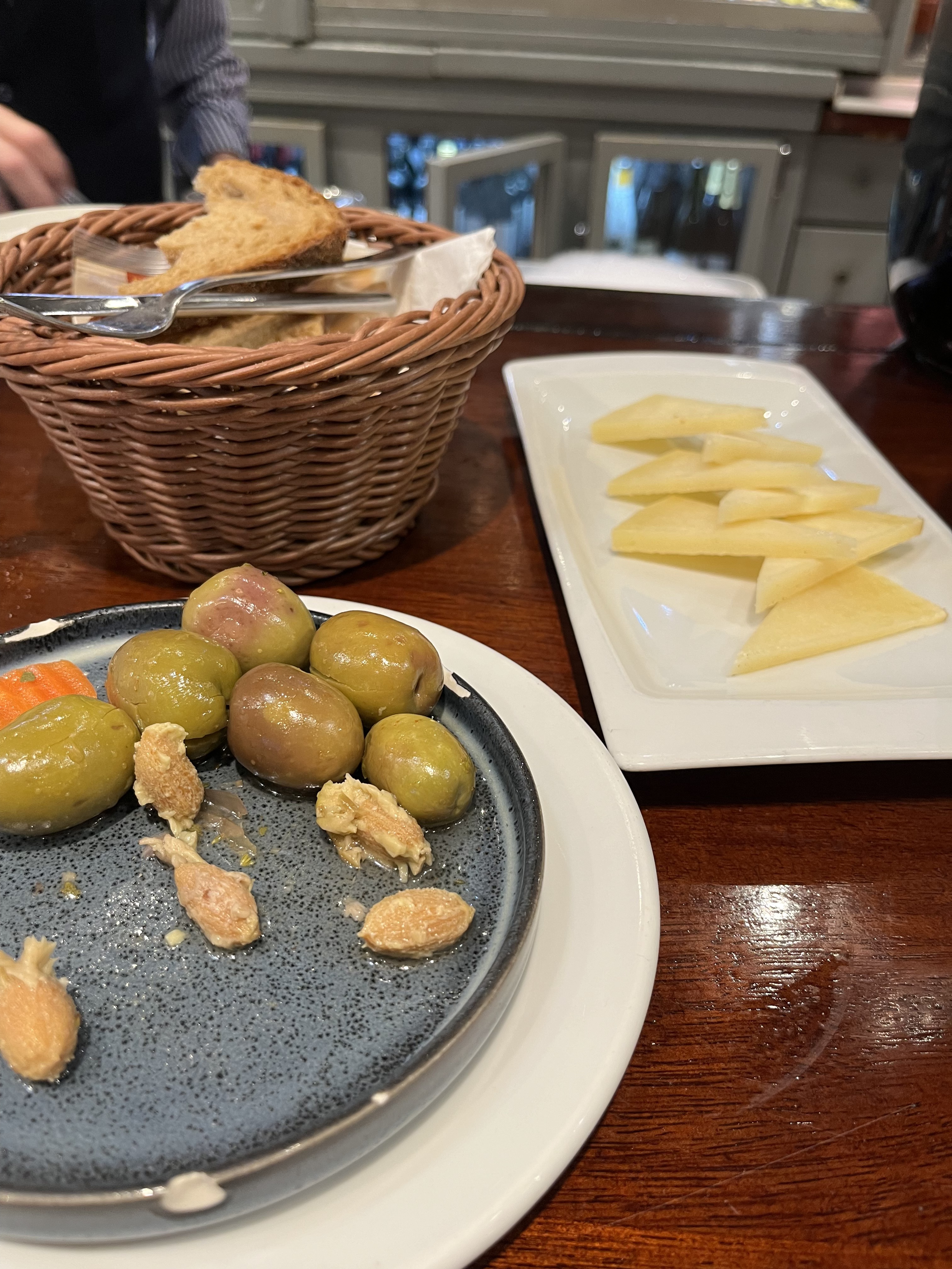 After Bodega Son Prim https://www.sonprim.com/en/home-2/ we drove back to Söller via the scenic mountain route through Validemossa and onwards past Deià again, which Nicole hadn’t seen, and then down the hairpin road overlooking the sea back to Söller. After dropping my friends off at their hotel, I had the frustrating experience of maneuvering through the narrow medieval one-way streets and, after a few passes, finally found a parking spot. Shortly after, Nicole and Leah came by for some wine and then we walked to one of the few restaurants still open and had an excellent dinner.
