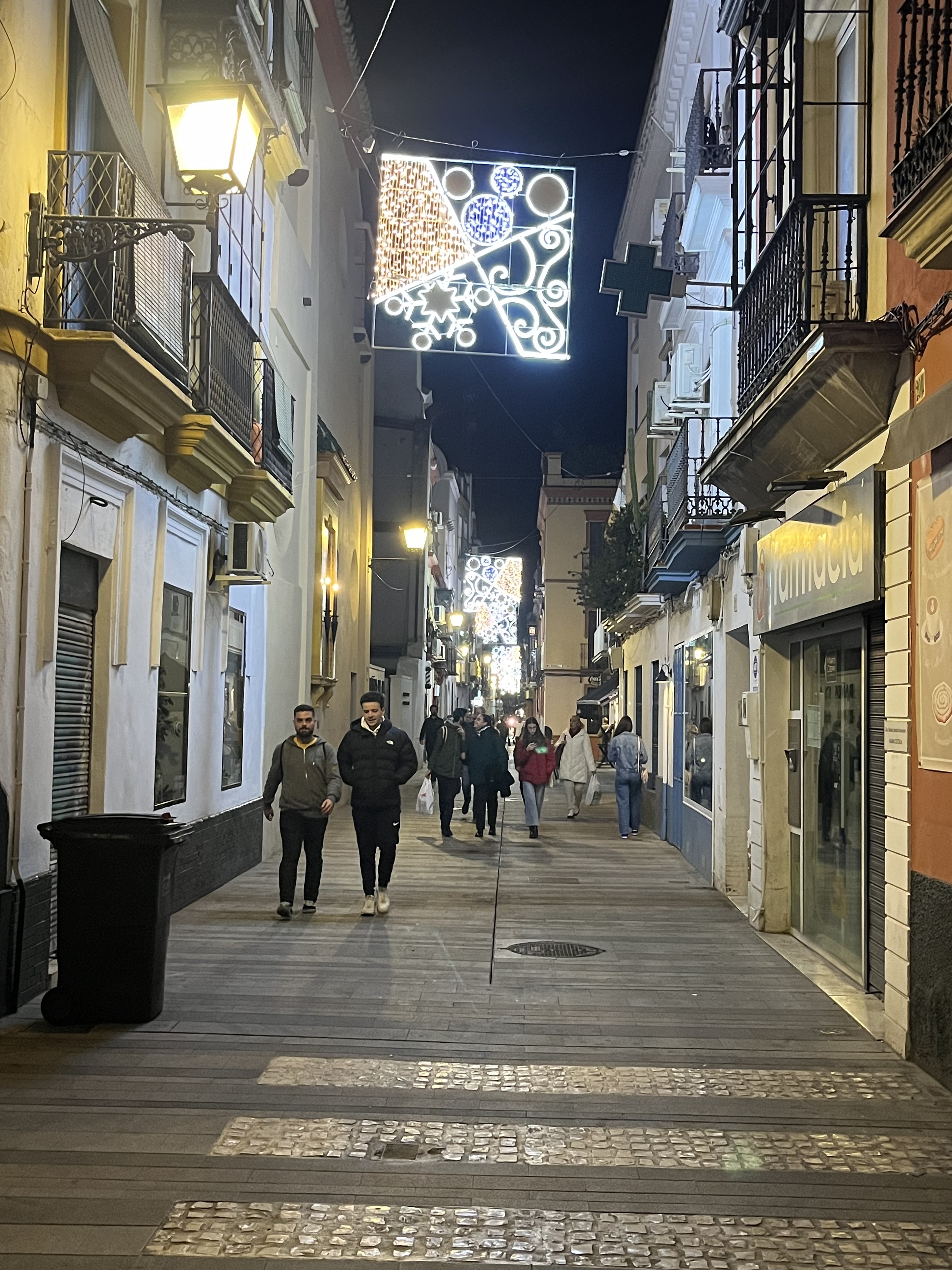 Heading back to my Airbnb and dinner, I snapped some shots of the Christmas decorations and the window displays of El Corte Inglés, the upscale Spanish department store chain.