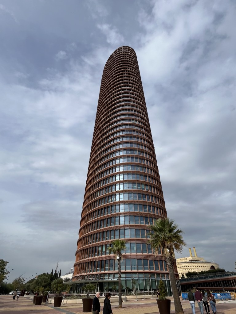 The tallest building in Sevilla is the 592′ Cesar Pelli-designed Torre de Sevilla, completed in 2015. The Caixa Forum, a shopping mall, is next door. Nearby is the massive tower of the Junta de Andalusia, designed after the Castello di Sant’Angelo in Rome. The last building is the Lyceé Français.