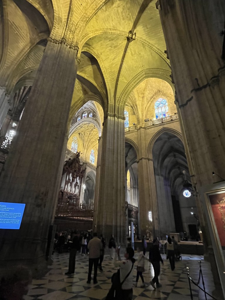 When planning a visit to the extremely popular cathedral and Giralda tower, I highly recommend buying the 12 EUR ticket online to avoid the paper ticket queue. I also suggest a later entry time to avoid the pressing crowds, especially when walking up to the top of the Giralda. I was through the line and inside the cathedral in under ten minutes.