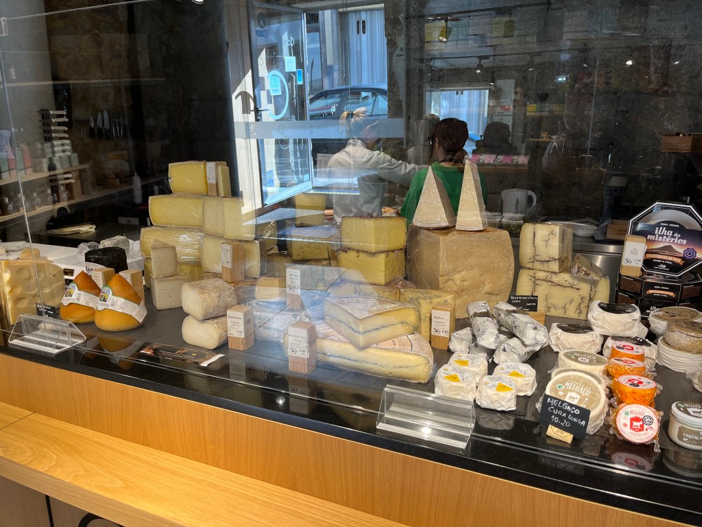 I passed by a beguiling cheese shop, CorriQueijo (cheese is normal), which was closed in the early afternoon. When I came by later I bought a few hundred grams of Portuguese cheeses, including a raw goat milk one, a blue, and a soft cheese from the Azores. They also had a little tasting along with a glass of Alvarinho, produced in Braga. I bought a bottle.
