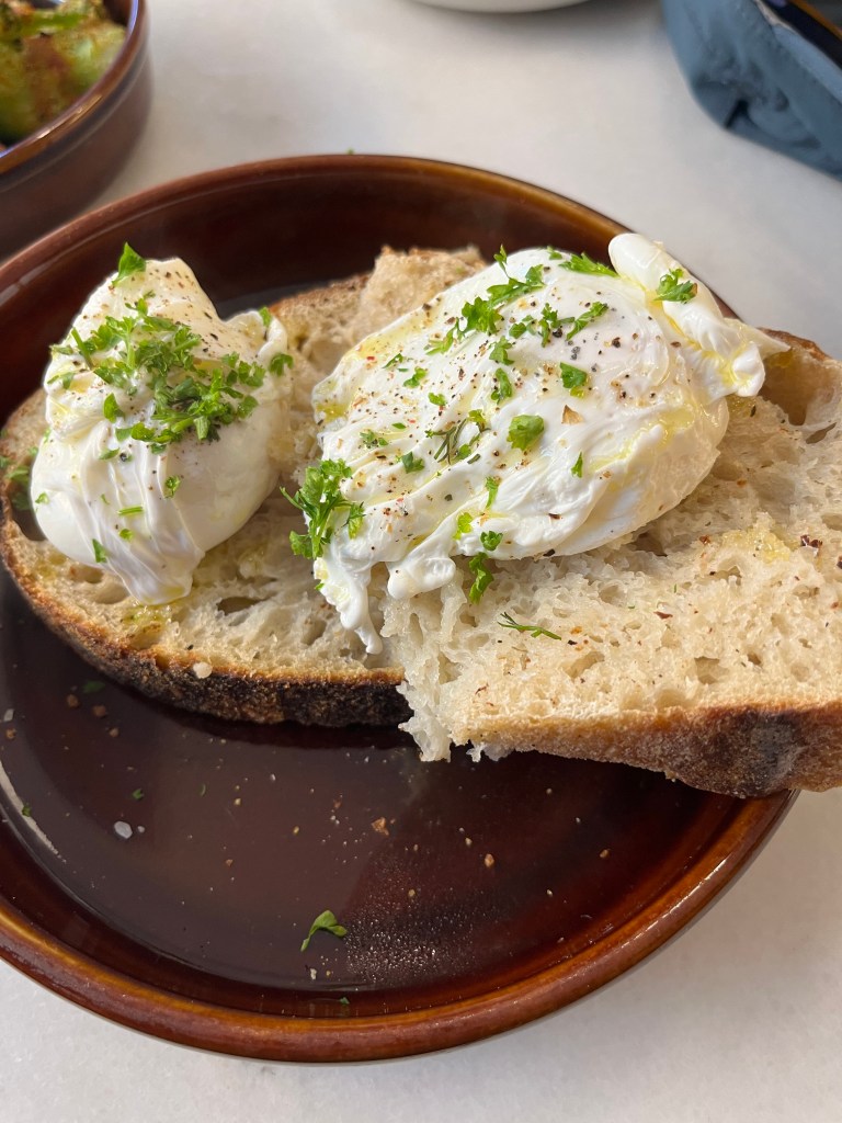 After a trip to the room, I Googled breakfast spots and saw that highly-rated Early was only 5 minutes away. I’m glad I checked it out. At 9:30, I was the first customer. I joked with the server about the lamentable cappuccino scene in Portugal and she promised that they knew how to make one. It was delicious. I ordered two poached eggs on their freshly made bread and a side of seared broccoli with carrot kimchi for some missing probiotic action. The food and ambience were perfect.