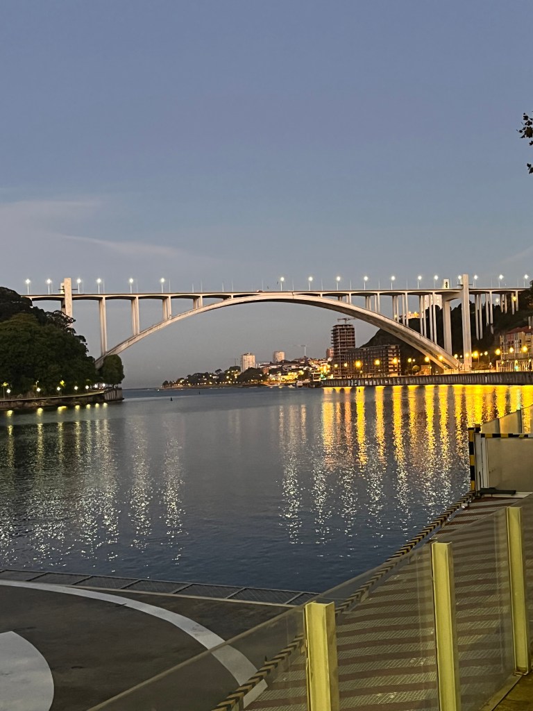 After a well needed sleep I arose around 5:30 and enjoyed two Nespresso espressos in the room and checked messages. I decided to go for a long walk down the hill to the Douro riverfront and walk to the lighthouse on the Atlantic in Foz, which I’d passed on the bike ride on Tuesday. It was still dark when I left and the streets were empty. After descending the Rua da Restauração I reached the riverfront and headed west under the high arch bridge, Ponte da Arrábida. As the sun began to rise some walkers and runners appeared. I took a photo of the lighthouse and turned around as the sun was rising. When I climbed back up the hill to my hotel, I checked Strava to see that I’d gone 7.2 miles.