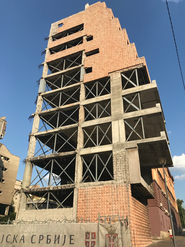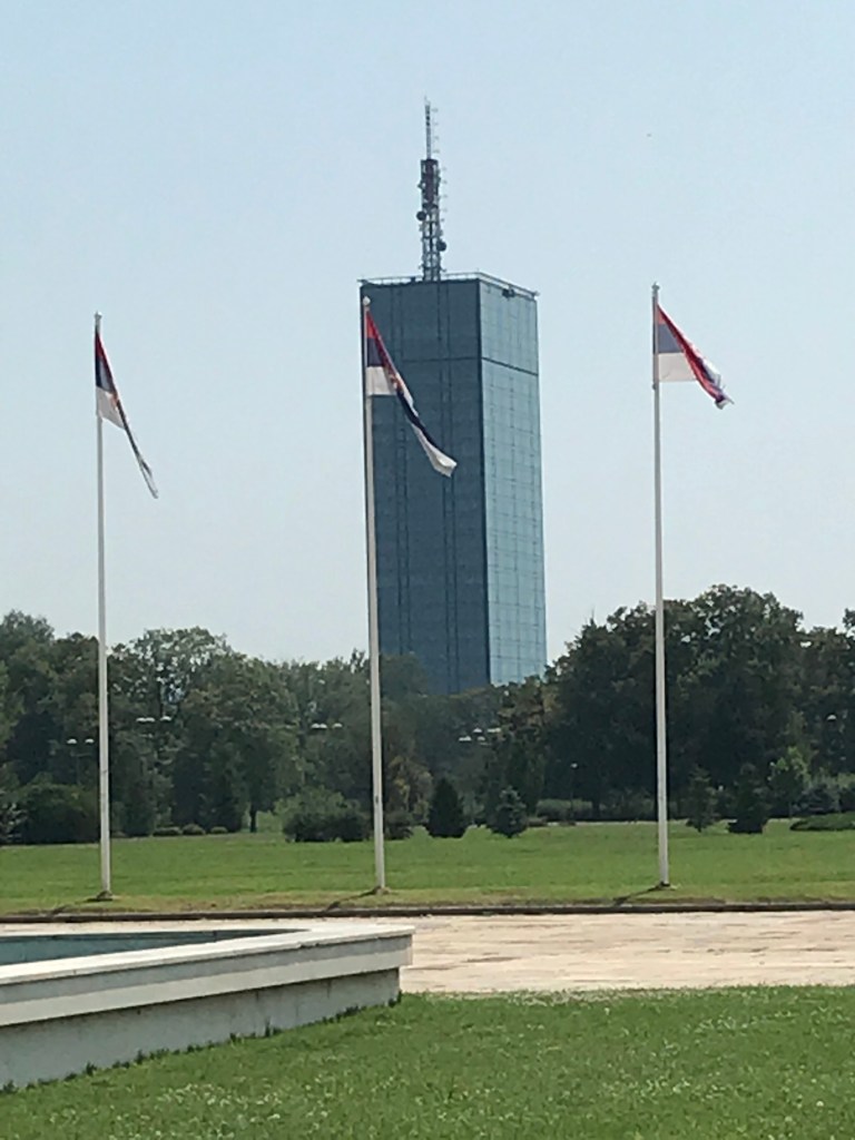 The next day I’d scheduled a bike tour at iBikeBelgrad, a short walk from my place. There I met the manager Vojn and my guide, Simon. The bikes were in great shape and we headed off for a tour of the riverside and New Belgrade. Simon shared that he took part in some antigovernment demonstrations and had sustained a leg injury. As I was to discover, there was a feeling among the young that the Serbian government wasn’t that much different than the old Tito-era authoritarianism. It was a beautiful early August day and the bike paths were easy to navigate. Simon showed me some famous examples of the Brutalist architectural style, which the Tito regime embraced. Among the buildings were the Palace of Serbia, the Genex Tower and the Hotel Jugoslavija. A rather macabre site we passed, the old Belgrade Fairground, built in the late 1930’s for exhibitions and car shows, had been used after the 1941 German invasion as a killing site for Jews. It was the first time the SS experimented with mobile gas vans, according to my guide. This part of the city had been part of the Independent State of Croatia at the time, since it was on the other side of the Danube. There was no monument at the abandoned site, since Marshal Tito didn’t want to incite ethnic tensions. There is a Brutalist memorial on the other side of the river, but it’s pretty obscured.