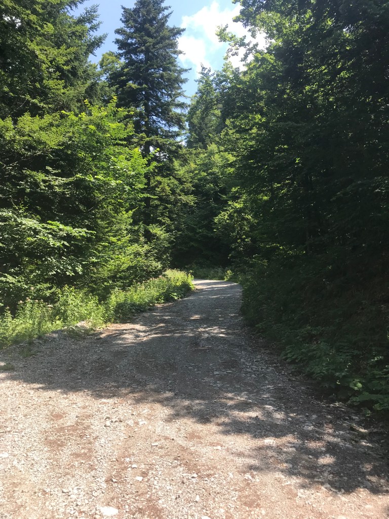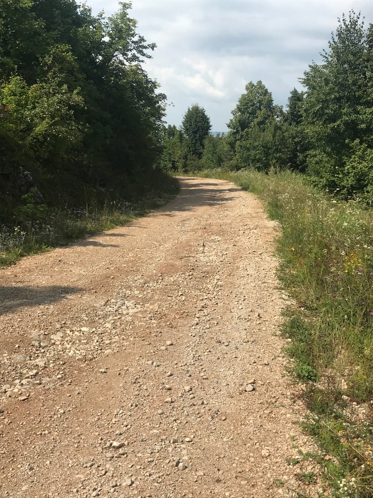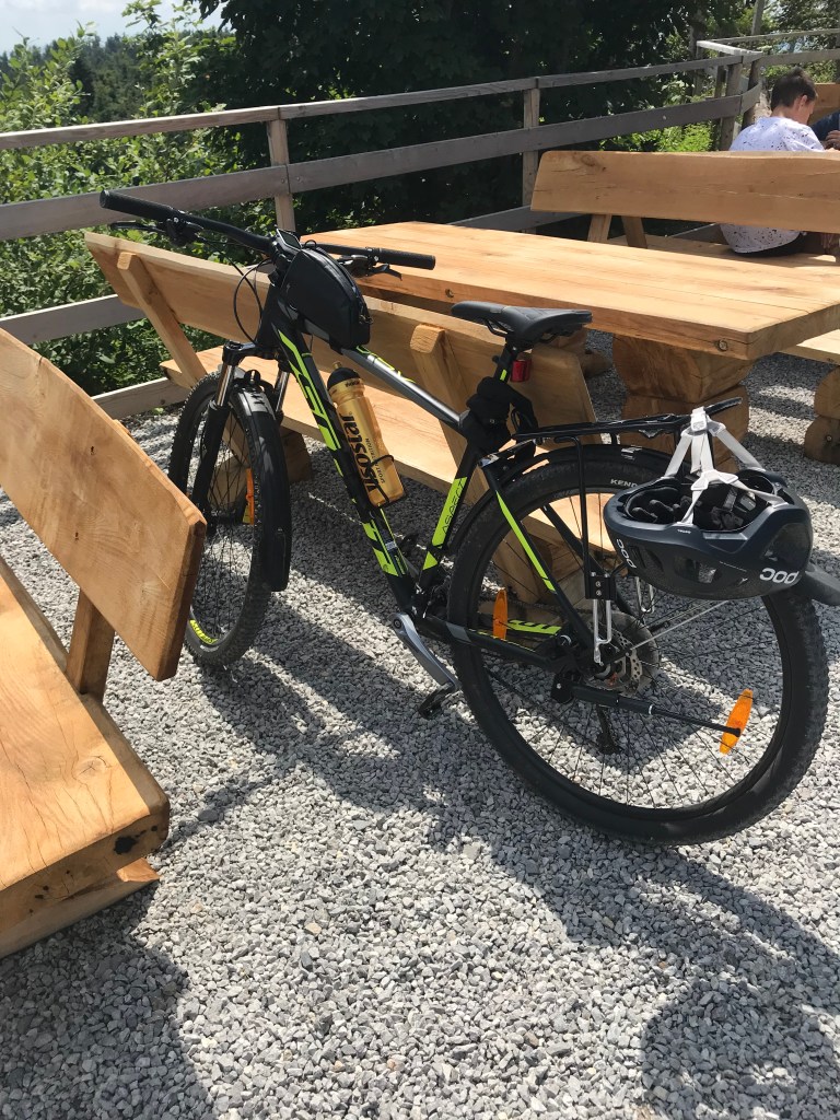 The next morning I rented a mountain bike from the shop behind the hotel. The staff was great. They swapped out the flats for some pedals I brought and also programmed their Garmin with a few long-distance rides. Katje, one of the managers, even provided me with a bike rental contact in Sarajevo, which turned out to be a great resource. Within a few minutes I was off to Mount Krim. About half of the road up to the summit was paved and then it turned into a well-maintained gravel road. As I got close to the summit, I ran out of water and was unsure how distant the peak was. A Slovenian Army Humvee pulled up alongside and the soldier asked if I needed anything. When I told him I was out of water, he pulled into a telcom station and returned with two bottles of water and told me I was less than one km. from the top. After thanking him, I continued up what had become a seriously steep climb. At the top, there was a little restaurant with outside seating, so I ordered lunch and enjoyed the amazing view, with Ljubljana in the distance. There was a young couple with their yellow Lab sitting nearby and we started a conversation. I commented on his excellent American-accented English and he told me that he’d perfected it watching American television. I said goodbye and descended the mountain at a nice clip and then returned to the city, after passing through a lovely farming region.