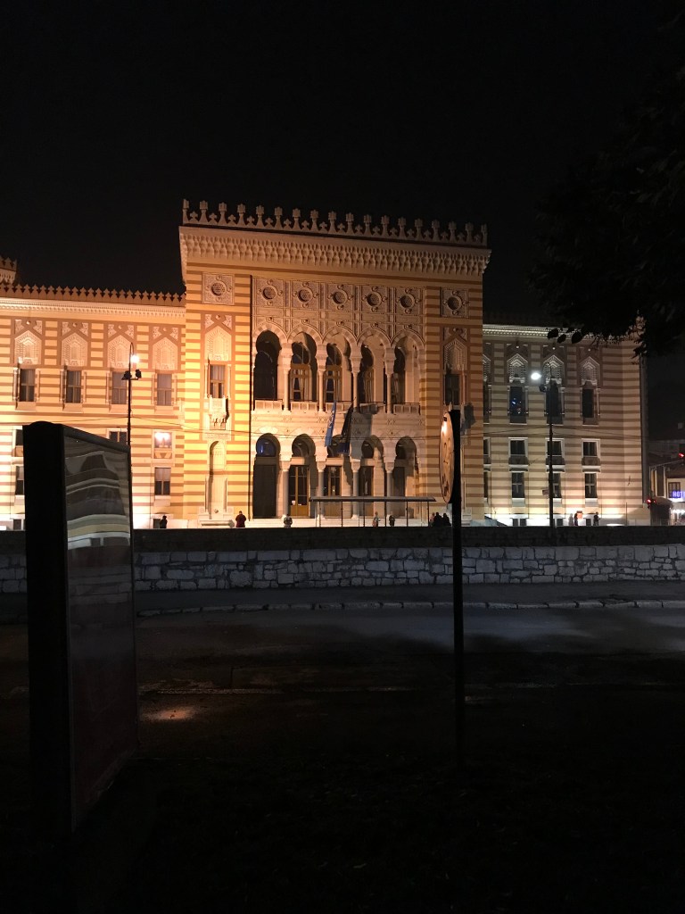 When I got back to the hotel, Haris was seated with his son and another fellow, all chain-smoking, as seemed common among the Bosnians. To avoid getting another Bosnian history lesson, I said I needed to check email and take a shower. I decided to take a break from pork and beef and visit a well-reviewed vegan restaurant up in the mountains and asked Haris to call his taxi to drive me. When I told him the address a look of horror came over his face and he said “That’s in Republika Srpska and they hate Americans. You won’t be safe.” I’d forgotten that the Serbian part of the Federation was close by. In fact, I’d been there the day before on my hike up Mt. Trebević. Rather than argue, I agreed to eat at a Bosnian restaurant, Avlija, on the north side of the city, across the Miljacka. The food was pretty heavy and I left a third of it on the plate. I couldn’t get any taxi to pick me up, so I walked the five miles back up the hill to the hotel, arriving around midnight. Of course, Haris was still up. I asked him if he had a lamp for bedside reading. He finally came up with one. I decided that I should have booked the Courtyard by Marriott by the river. The incessant smoking and babbling was beginning to get on my nerves.