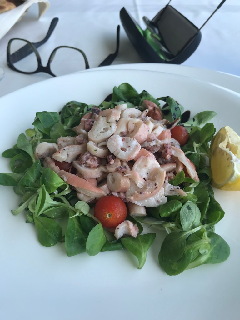 After some more sightseeing in the Old Town, the heat and humidity began to bear down on me, so I returned to the enoteca from the previous evening and had a great seafood salad and a glass of wine.