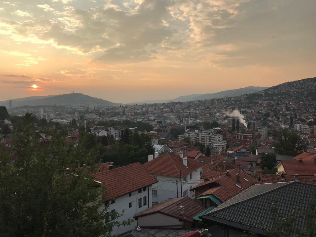 My seatmate on the short flight to Sarajevo was an American of Bosnian descent and she gave me a nice overview of Bosnia-Hercegovina. As we got closer, I was struck by how green and mountainous Sarajevo was. My seatmate pointed out some massive graveyards below. She said that they contained the remains of the thousands of civilians and militia killed by the Bosnian Serbs during the almost four-year siege of Sarajevo from 1992 to 1996. That war was to be an ongoing topic of conversation during my stay there.