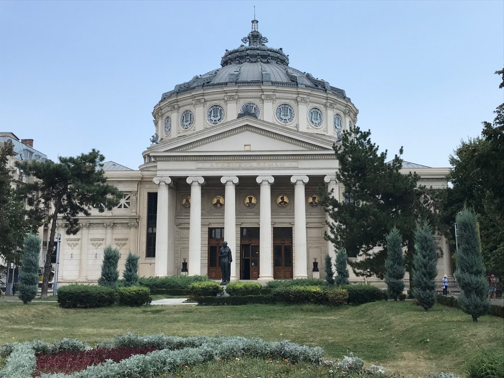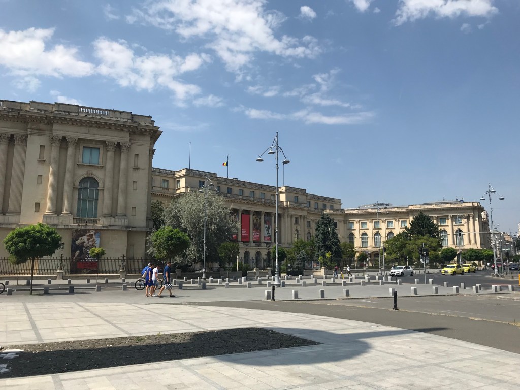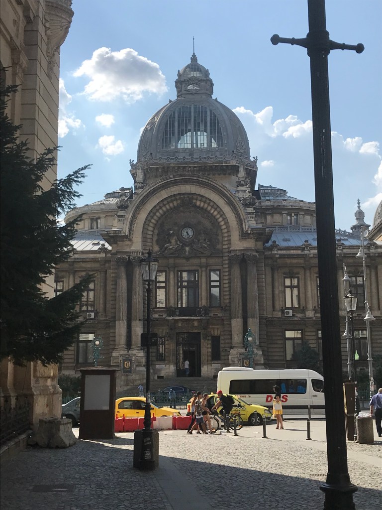 From here we walked over to the old town to view some Orthodox churches and other prominent buildings. One building was the sole skyscraper of pre-war Bucharest. After Romania left the Axis in 1944 and joined the Allies, the Luftwaffe tried to bomb the building, which was being used as a radio station. They missed and destroyed the National Theater instead.
