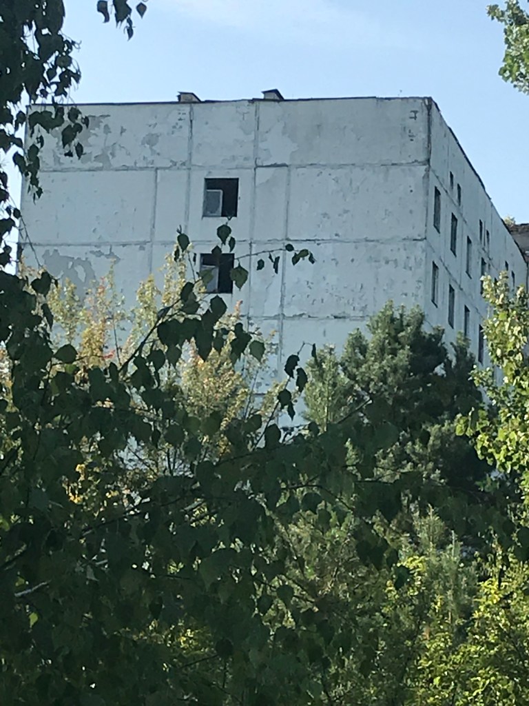Once the Soviet government acknowledged the scale of the disaster, they moved quickly to safeguard Ukraine and Belarus from the potential nightmare scenario, including the poisoning of the Dnipro, which provided water to millions of citizens. They mobilized 500,000 “liquidators”. The paths we traveled on were the result of the excavation of 3 meters of roadbed and its replacement with new soil and asphalt. The excavated dirt and all other contaminated items, including vehicles and all household furnishings and food, were buried in other areas of the exclusion zone. Red Army marksmen were assigned to exterminate all escaped pets and other wildlife. Ironically, during the initial failed offensive to take Kyiv in the opening weeks of the 2022 Russo-Ukrainian War, the Russian army sent armored units into the most highly contaminated sectors of the zone, including the notorious Red Forest, which led to the evacuation of hundreds of soldiers with radiation sickness. Russian denialism at its best.