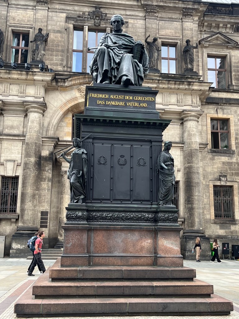 The unfriendly bakery I joined the walking tour at 11. As usual, the guide was a highly-informative university student with the unlikely name of James. He gave a comprehensive overview of the city’s origins, beginning with the Sorbs, a Slavic tribe which was eventually overpowered by Saxons moving southeast. The first capital of Saxony was Meissen, famous for its porcelain, but the ruling Wettin family, from whom the House of Windsor is partly descended, moved the capital to Dresden and ruled until 1918. Their most famous king was Augustus II the Strong, who also wore the Polish crown in the early 18th century. Eventually the Prussians came to dominate Saxony, which became part of the new German Empire in 1871.