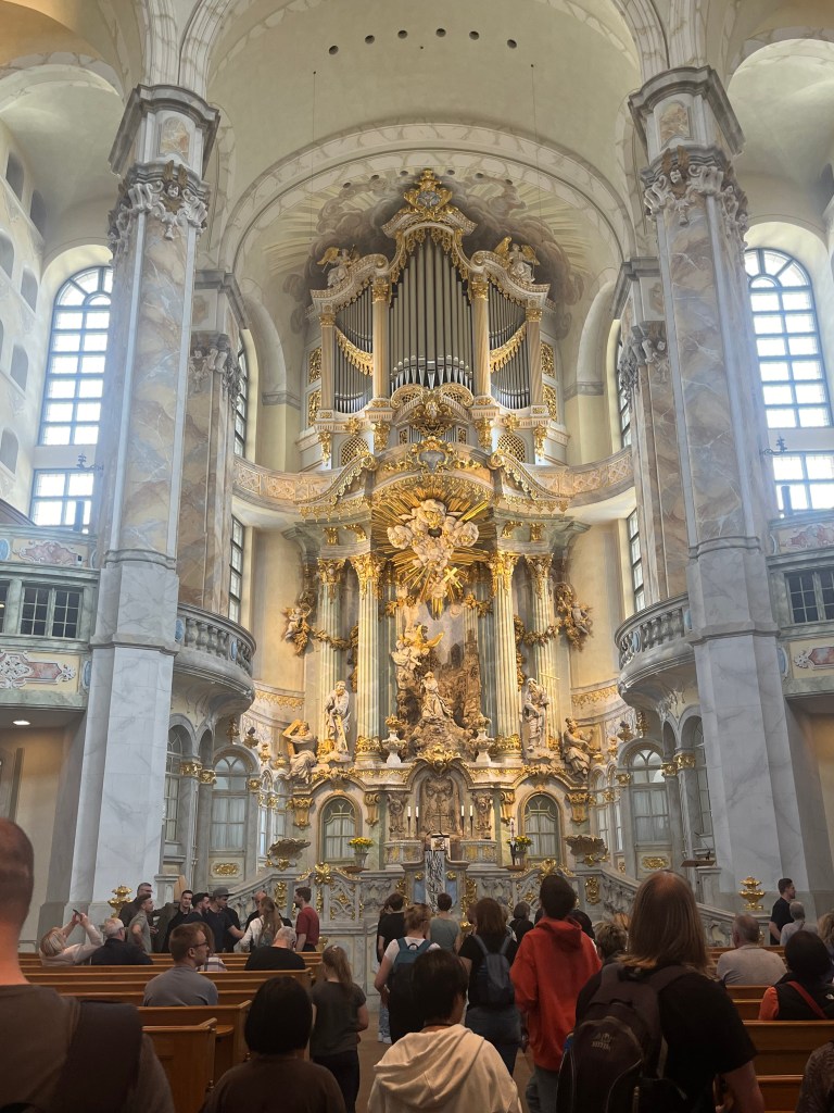 High Altar of the Frauenkirche After the 150-minute tour I rode the tram with James back over to Neustadt and then left for the restaurant area to grab a late lunch before walking back to the hotel. The hotel had a sauna, so I took advantage of that before getting ready to head over to the Semper Opera for a performance of The Marriage of Figaro. I was surprised how dressed up the full crowd was. At least I was wearing a collared shirt! My seat was at the end of the row, so I didn’t have to climb over people. I often nod off during performances, but this time I managed to stay alert during the three-hour performance. At least there was a nice intermission. The opera was well staged and enjoyable.