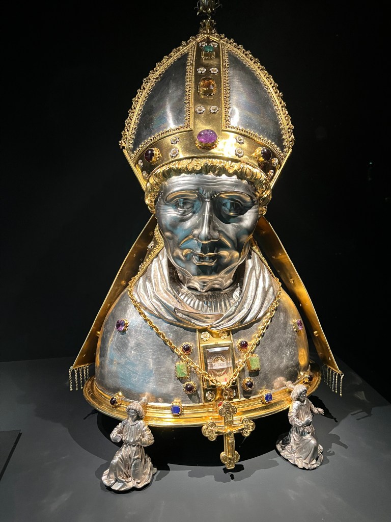 This morning I went for another walk around the Altstadt and visited the Staatliche Kunstammlungen to view the religious objects on loan from St Vitus Cathedral in Prague. There were a number of macabre reliquaries with actual pieces of flesh and fingers from saints. The exhibit also featured a small collection of icons and metal busts of prominent Bohemian nobles and bishops. It was coincidental that I was heading to Prague later that day.