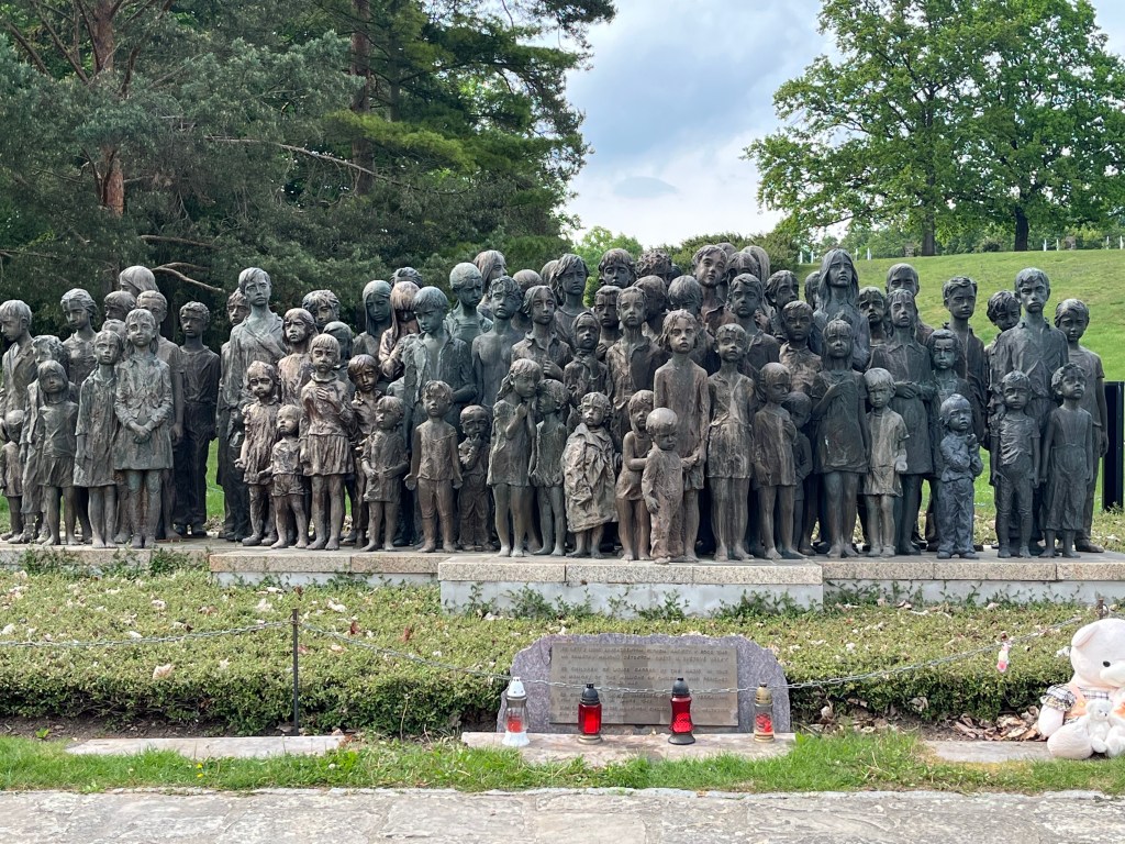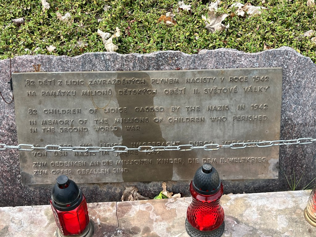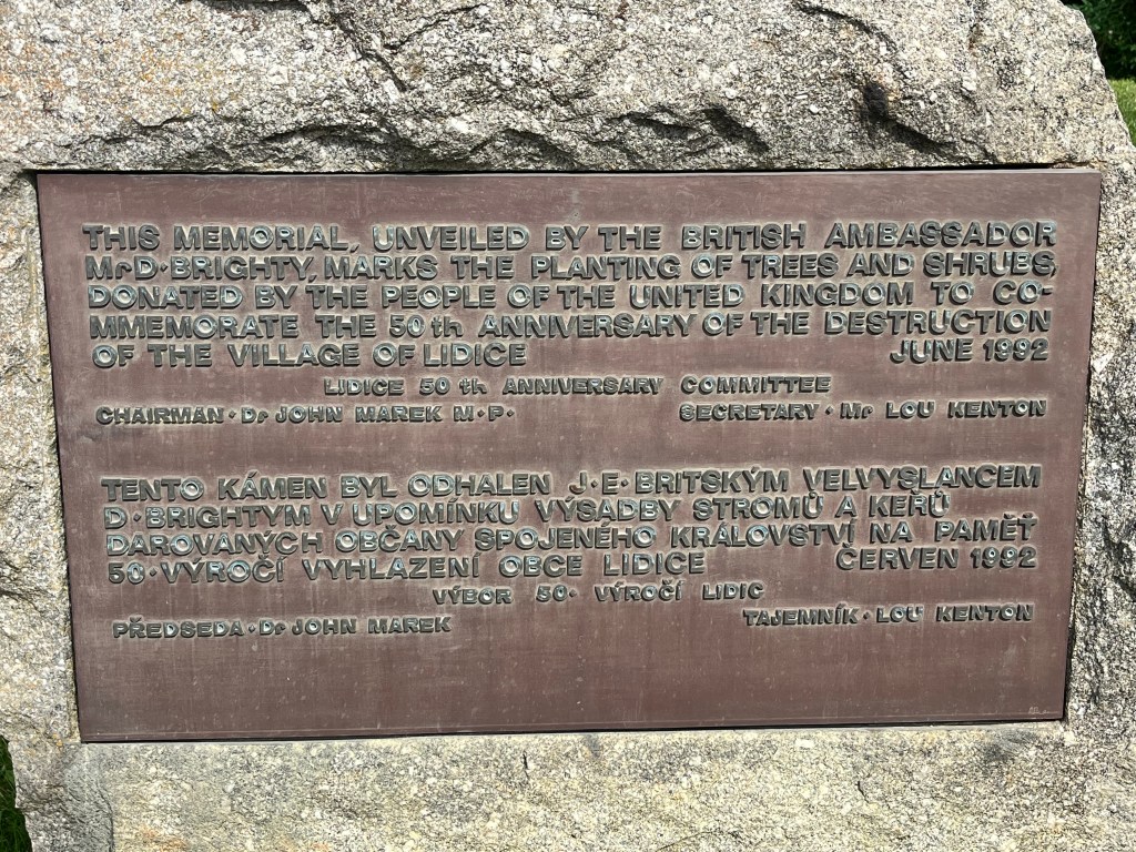 The rebuilt Lidice in the distance For most, foreign travel is about enjoying new cities and delighting in other cultures. In my 16 trips to Europe, I also wanted to encounter the darker side of history, of the terrible inhumanity that has occurred in the past and which still continues. I was deeply moved by this visit to an otherwise bucolic countryside. After viewing the children’s memorial, I had to walk into the woods and dry my eyes. I shudder just writing about it.