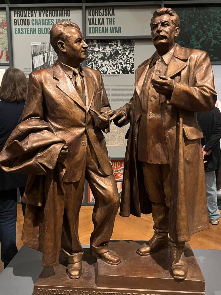 Klement Gottwald (L) with Comrade Stalin I decided to trek up the big hill and walk through the Nový Svět neighborhood in the rain and have a very late lunch at a charming bistro that I noticed on Sunday; but, alas, it was closed. So I popped into a surprisingly good local Czech place instead.