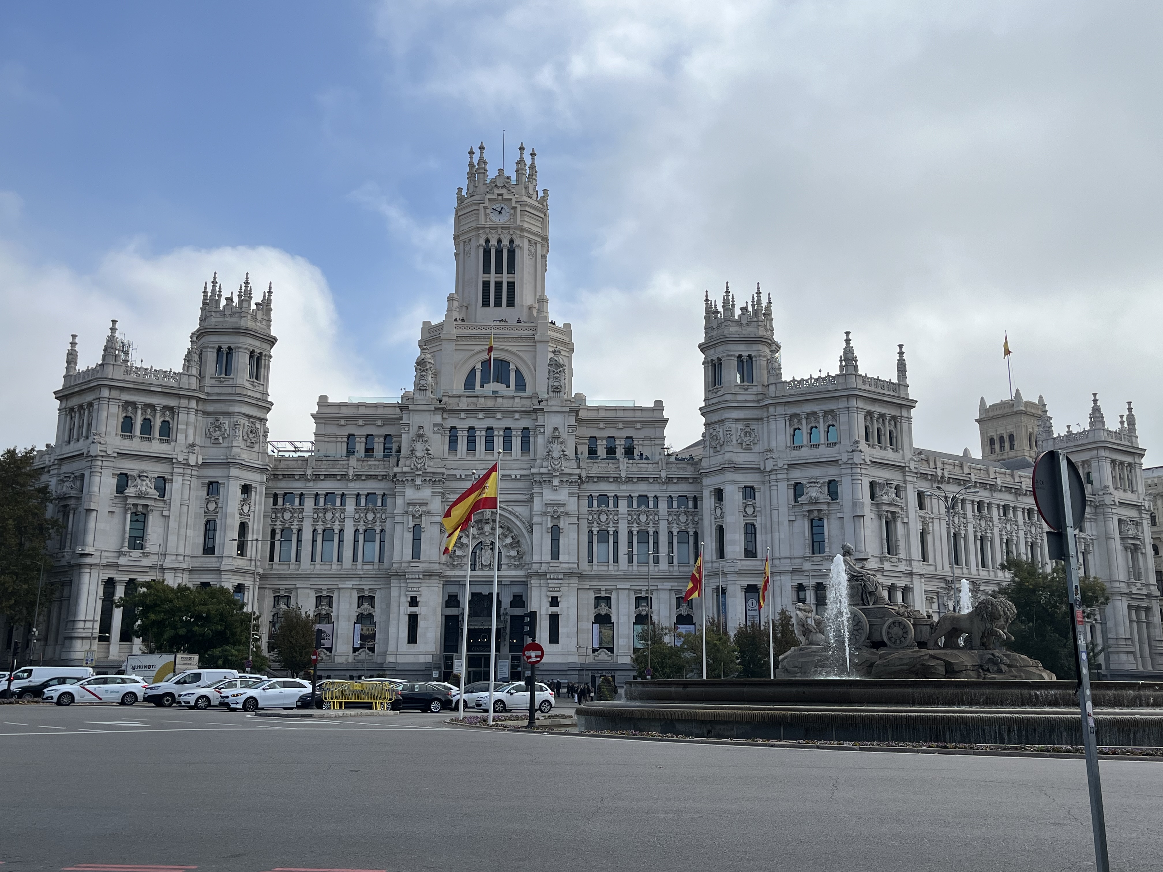 I arrived in Madrid around 7:30 am in the morning gloom, since sunrise at this latitude isn’t until 8:05. Typically, Delta One’s business class product is superb, but this one was mediocre. It was a 767, which I didn’t know was still in service. The power outlet didn’t work, there was no personal light for reading, and the food was awful. At least there was a fully flat sleeping configuration with a decent pillow and blanket. I doubt that I slept more than an hour. Passport control at Madrid Barajas was quick and I grabbed a ride to my hotel. The fall scenery was splendid and the drive took us through several city parks which was pleasant.
