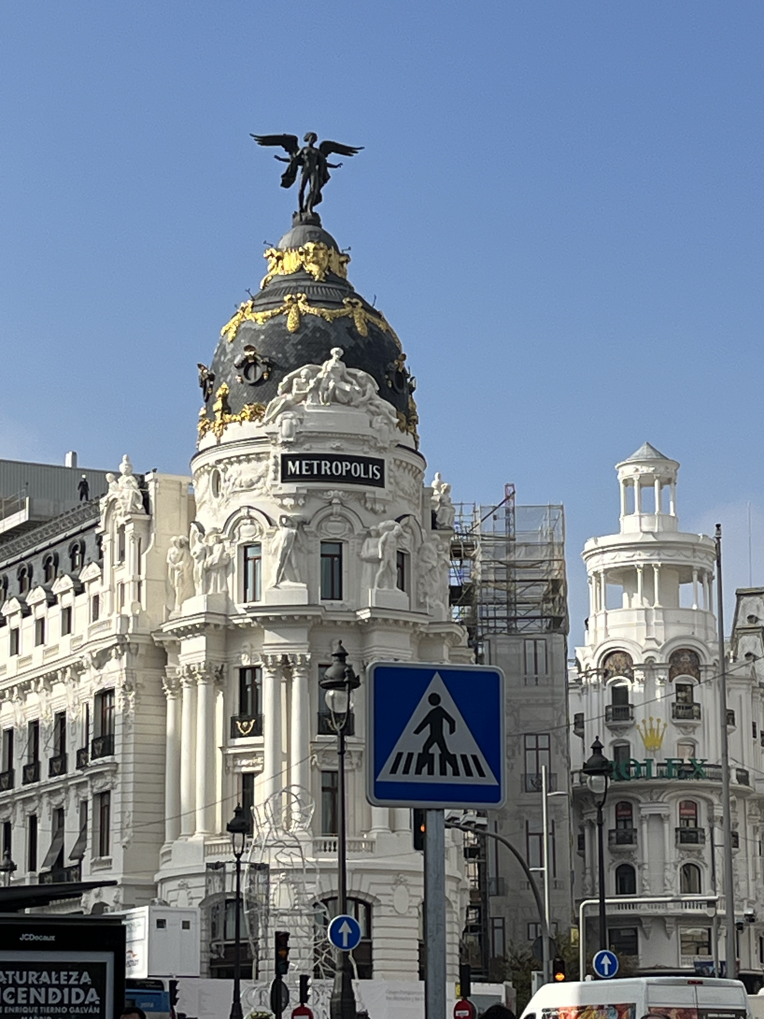 A friend and his wife suggested brunch at El Federal, which was a 3 km. walk from my hotel. I walked along the Gran Vía, Madrid’s broad shopping and commercial artery. It was somewhat depressing to see the usual American fast food and clothing chains. En route, I stopped at the Plaza de España to admire two high-rises built over 60 years ago during the Franco regime. At the time they were among the tallest in Europe. El Torre de Madrid at 37 stories is the tallest and El Edificio, completed in 1953, is 26. There’s a large fountain with a statue of Cervantes in the middle.