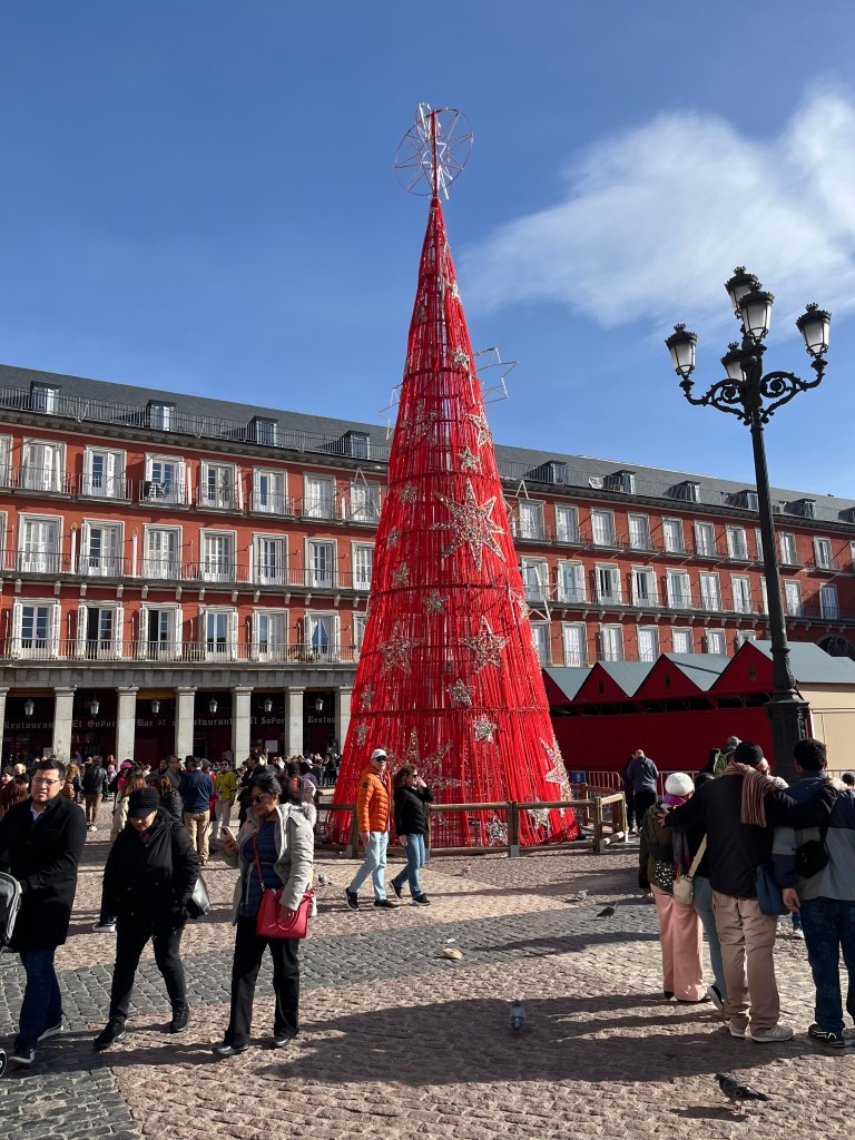I then revisited the Plaza Mayor, the Habsburg-inspired main plaza. Most are unaware that the Hapsburgs ruled Spain from 1516 to 1700 when the Spanish Empire was at its zenith. Charles V and Philip II were two noteworthy kings. It was also under the Hapsburgs that hundreds of thousands of Moriscos were deported from Spain. The Moriscos were Moors who had converted to Christianity after the Reconquista. The Church and the King were always suspicious of the Moriscos’ true intentions in converting to Christianity and planned their removal. Part of this was related to the concept of Limpieza del Sangre, or purity of the blood, in this case referring to the true Catholic Spain of Visigoth and Celtic origins. Although many nobles who employed the Moriscos on their estates objected to losing their valued and talented vassals, the reactionary elements of the Inquisition and Philip III persevered. This period is a fascinating yet largely forgotten part of Spanish history. Plaza Mayor with Christmas tree prep: