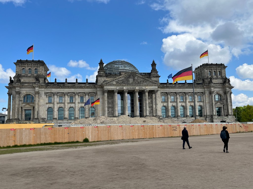 After a pleasant ride on the high-speed ICE to Berlin Hbf , I walked out of the massive glass station onto a vast plaza and was pleased to see the famous Bundestag, originally known as the Reichstag, looming in the near distance. Readers may be familiar with the famous 1933 Reichstag fire, which Hitler used as a pretext for claiming dictatorial power and later the sight of the choreographed raising of the Soviet flag over its semi-ruins in April 1945. Unfortunately, an ongoing construction site obscured the full view, but I was able to grab a few decent shots.
