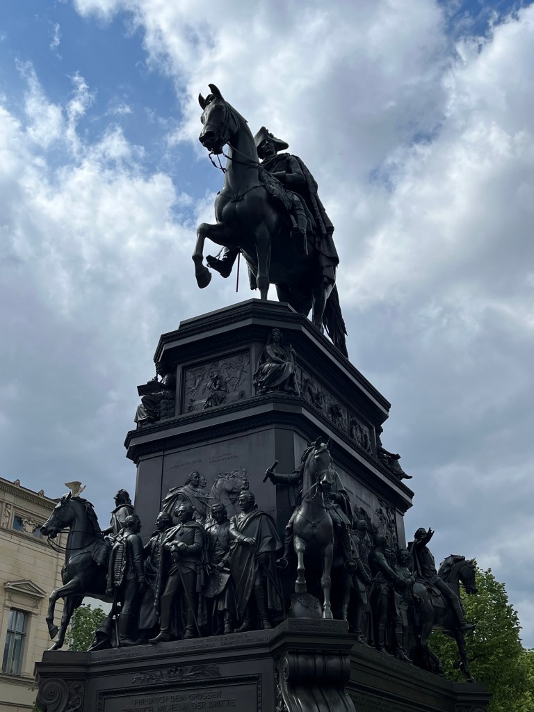 As our guide explained during yesterday’s bike tour, Frederick the Great (Frederick II) wanted to be outside of Berlin owing to his obsession with privacy. He let his younger brother, Heinrich, live in the two city palaces. Young Frederick is alleged to have had two intimate male friends, one of whom was beheaded by his father while he was forced to watch. Although Prussia was a garrison state during his father’s reign, young Frederick preferred more rarified pursuits, including music, philosophy and art. He was a close friend of Voltaire, from whom he acquired his humanistic character. Nonetheless, he developed notable military prowess after becoming king, and after a series of successful military campaigns, especially against Austria, he established Prussia as a major European power and greatly expanded his crown lands.