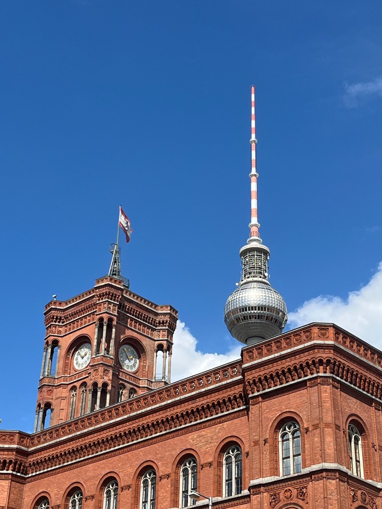 Juxtaposition of Rote Rathaus and Fernsehturm