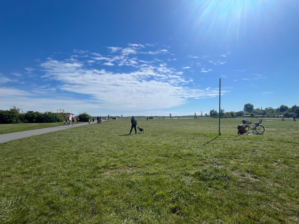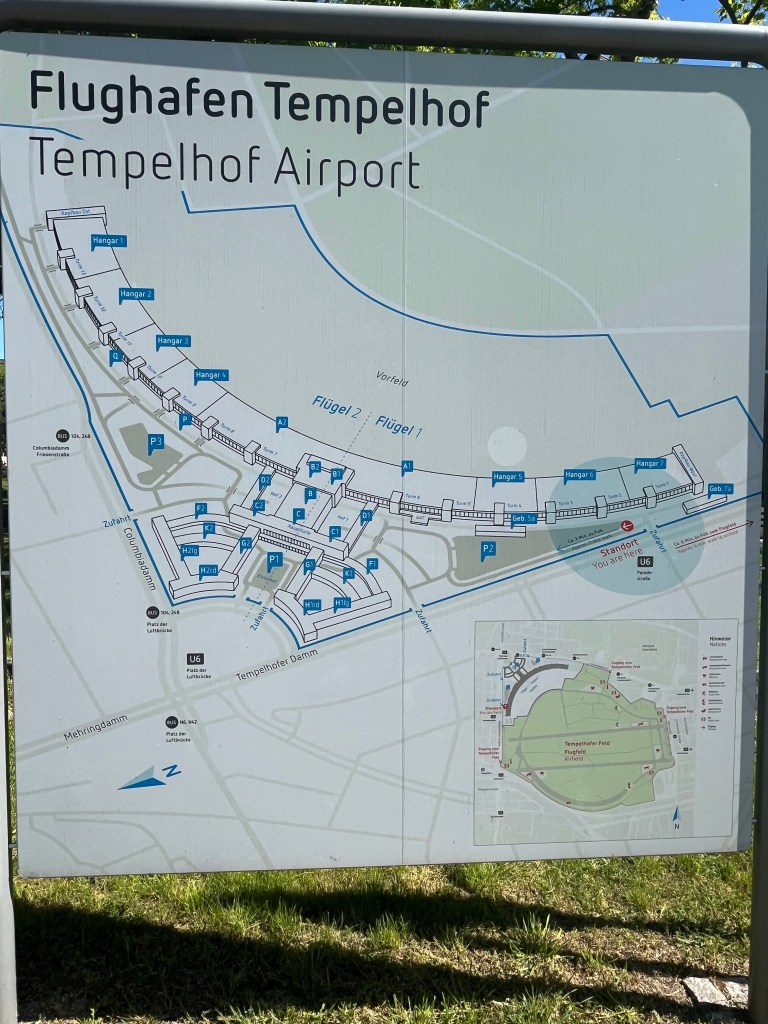One approaches the airport by way of an immense playing field, where the Prussian Army once drilled. A 2015 referendum passed that permanently dedicated this acreage for recreational use. While I was walking to the terminal building, I passed runners and cyclists.