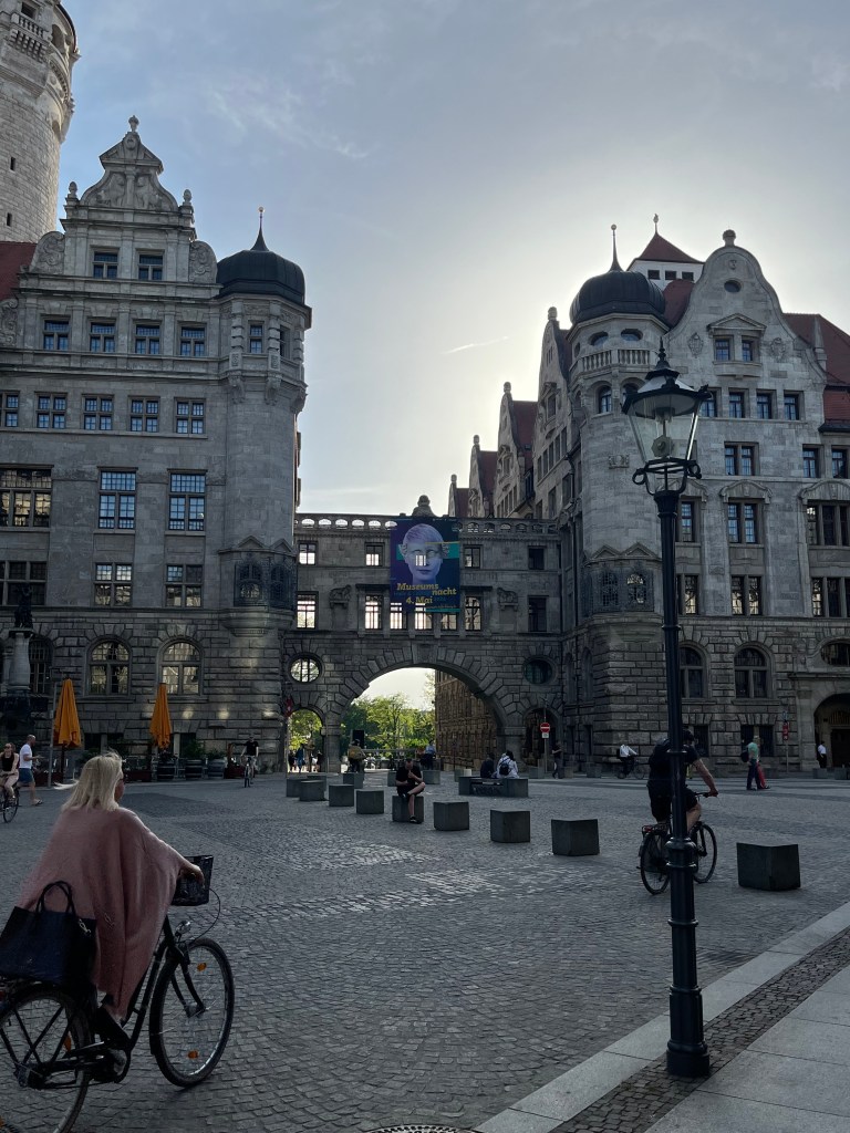 After 1800, Leipzig grew rapidly, as its commercial fairs made it a major center of European commerce. Messe is the German word for fair and an idealized “M” is the symbol of the city. In the 19th c. the city relocated its Rathaus (city hall) to the site of an old castle, which is now the hub of a series of upscale galleries, shops and restaurants.