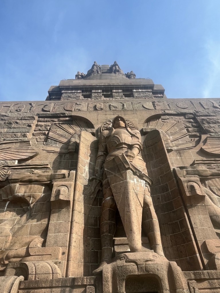 After a late lunch, I took a five-mile round trip walk down Pragersraße to the Völkerschlachtdenkmal (Battle of the Nations Monument) built in 1813 to commemorate the defeat of Napoleon’s retreating army by the forces of Prussia, Austria, Russia and Sweden. Over 600,000 troops were involved in the Battle of Leipzig and there were 120,000 casualties, the biggest battle in European history until the First World War.