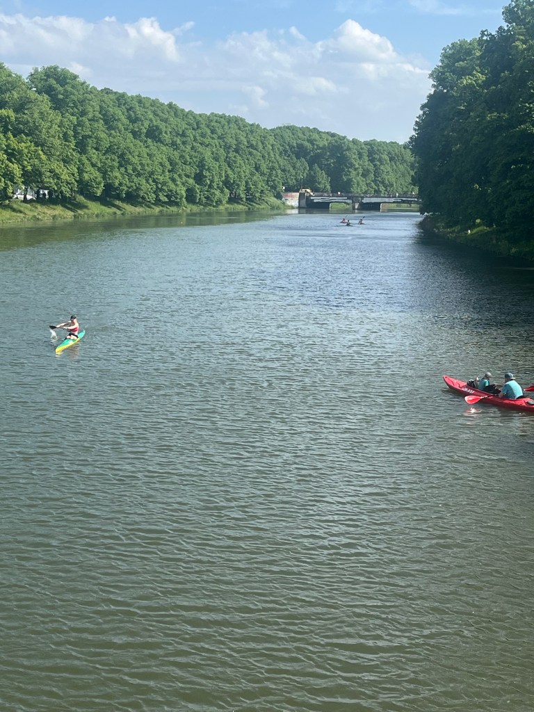 On the return I decided to take the tram part of the way since I knew I was close to my daily goal of ten miles. On the way, I snapped pictures of a canal and the River Mulde. If I hadn’t injured my right arm I would’ve rented a canoe.