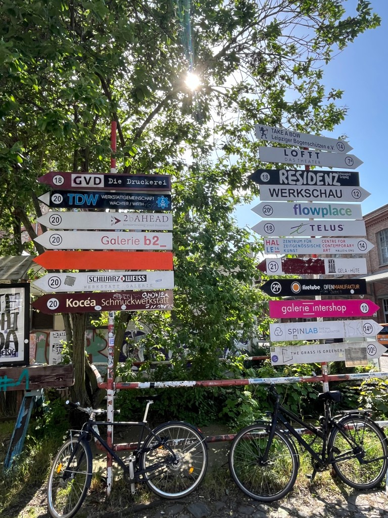Since it’s another perfectly sunny day, I plan to use the bike and take a long leisurely ride through the parks and out to the lakes, which were created 30 years ago by filling in the huge coal and lignite mines. Perhaps I’ll stop by Die Spinnerei, the repurposed spinning mill that was once Europe’s largest before being closed in 1993. It’s now filled with galleries and artists’ lofts.