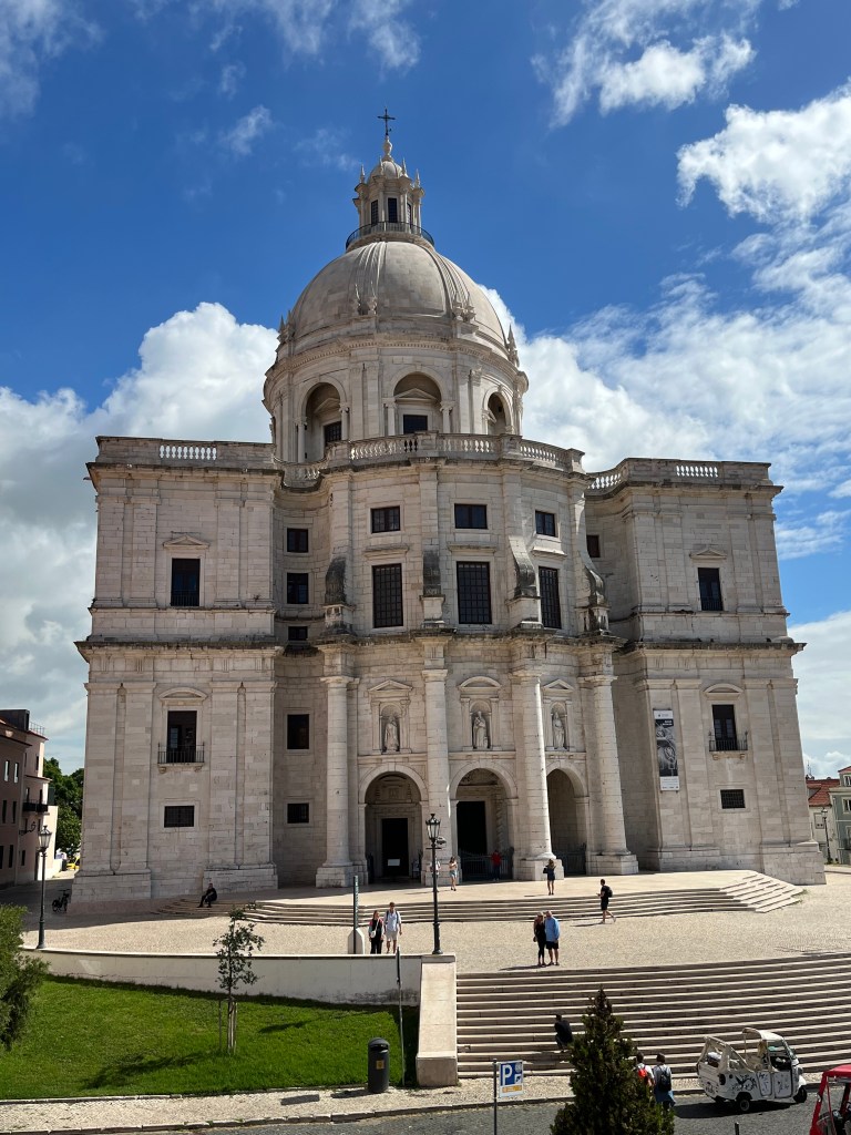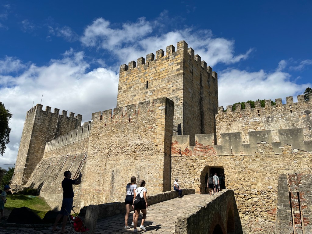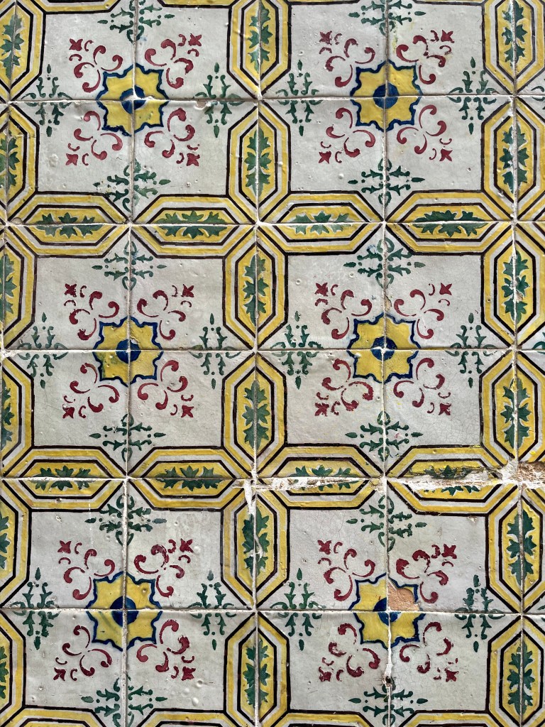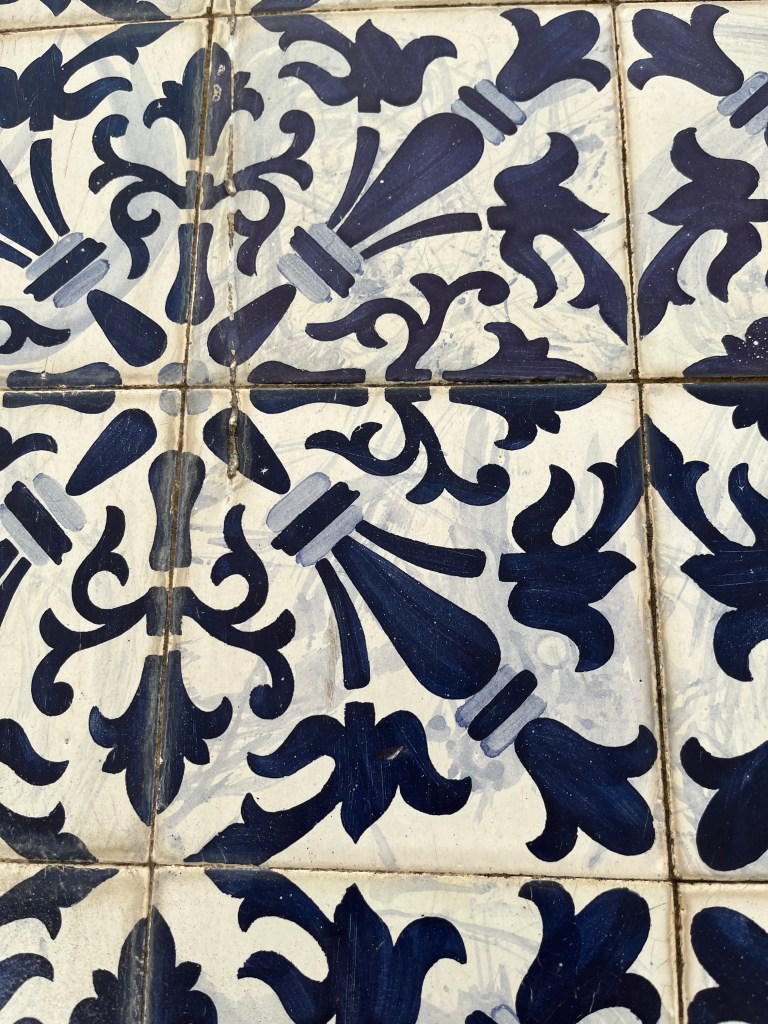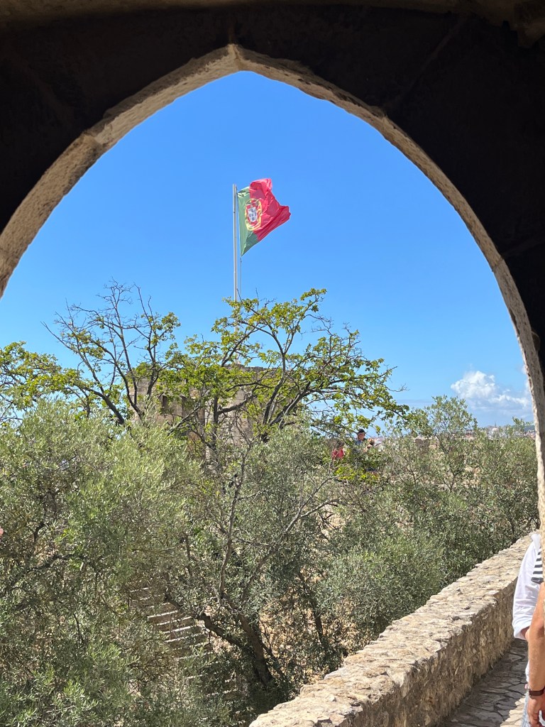 My hotel, Josefa d’Óbidos, was right there, so after checking in I walked up the hill to the historic walled part of town. The rain had ended and the weather turned sunny and humid. I was drenched by the time I got through Port Da Vila, the main gate into the walled town, established by the Moors before the 12th century and reclaimed by the Portuguese in 1228. I walked on top of the wall, a distance of almost 1600 meters, up and down. By this time, the sun was broiling. I found a shaded open-air esplanade, Esplanada Santa Maria, where I grabbed a tuna salad and some mineral water. The majority of the patrons, indeed most of the tourists, were retired people from Spain and France, with a few Britons, Americans and Canadians sprinkled among them. After a nice respite in the shade, I visited the historic Igreja (church) de Santa Maria, built in the XVI century. The tiles (azulejos) were magnificent, along with a Renaissance tomb in the style of the Pieta and paintings by Josefa de Óbidos, a 17th-century painter.